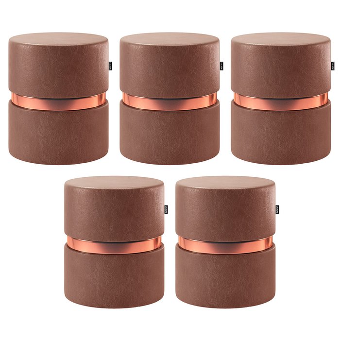 Kit 05 Puffs Bancos Decorativos Redondo Porto 49x43cm Corano Coffee - Desk Design