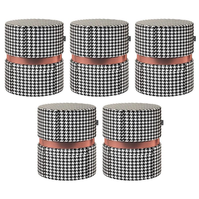 Kit 05 Puffs Bancos Decorativos Redondo Porto 49x43cm Suede Cardan - Desk Design