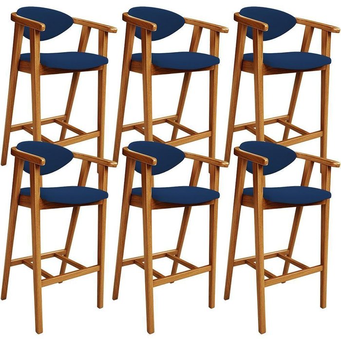 Kit 06 Banquetas Alta Cozinha Bancada Bar Sala De Jantar Fixa Cecília L02 Suede Azul Marinho - Lyam