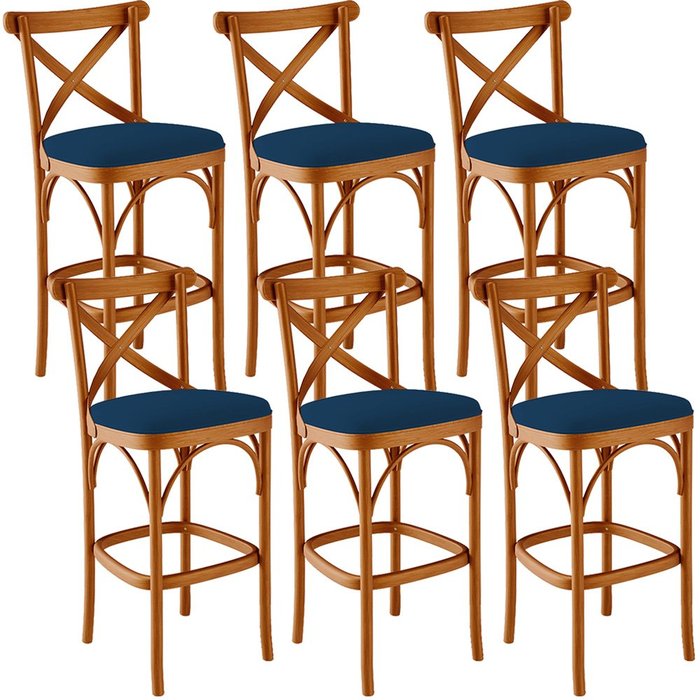Kit 06 Banquetas Altas Cozinha Bancada Bar Sala Jantar Estofada Ávila L02 Suede Azul Marinho - Lyam Azul Marinho