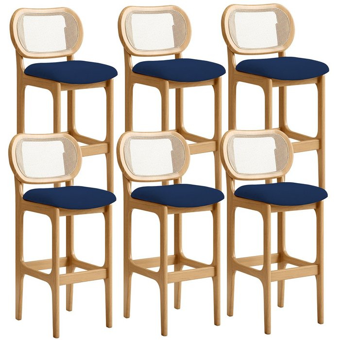 Kit 06 Banquetas Altas Para Cozinha Bancada Sala Tela Betta Fixa L02 Suede Azul Marinho - Lyam Lyam