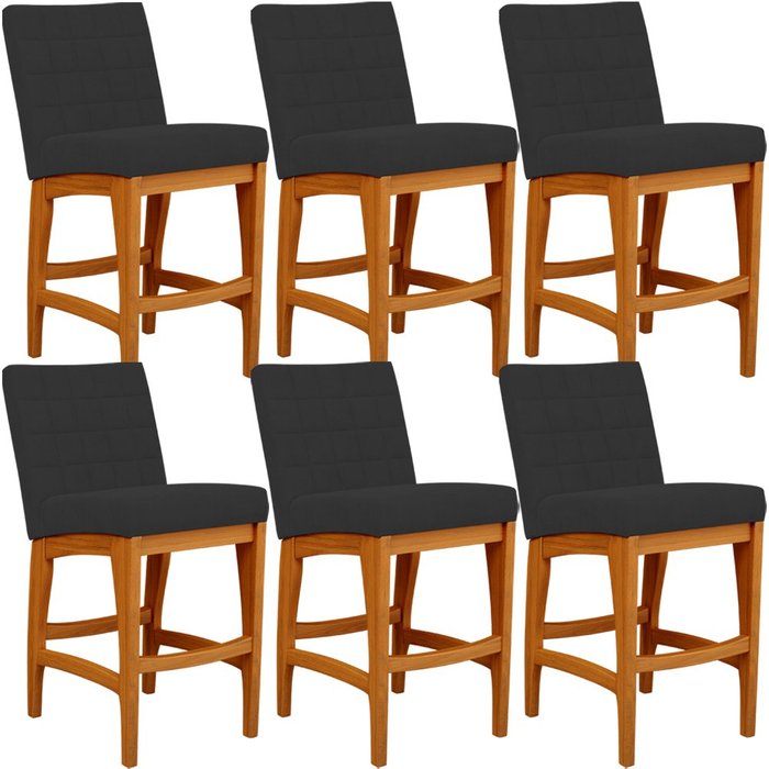 Kit 06 Banquetas Baixa Cozinha Bancada Bar Sala de Jantar Fixa Mila L02 Suede Preto - Lyam Decor Ban
