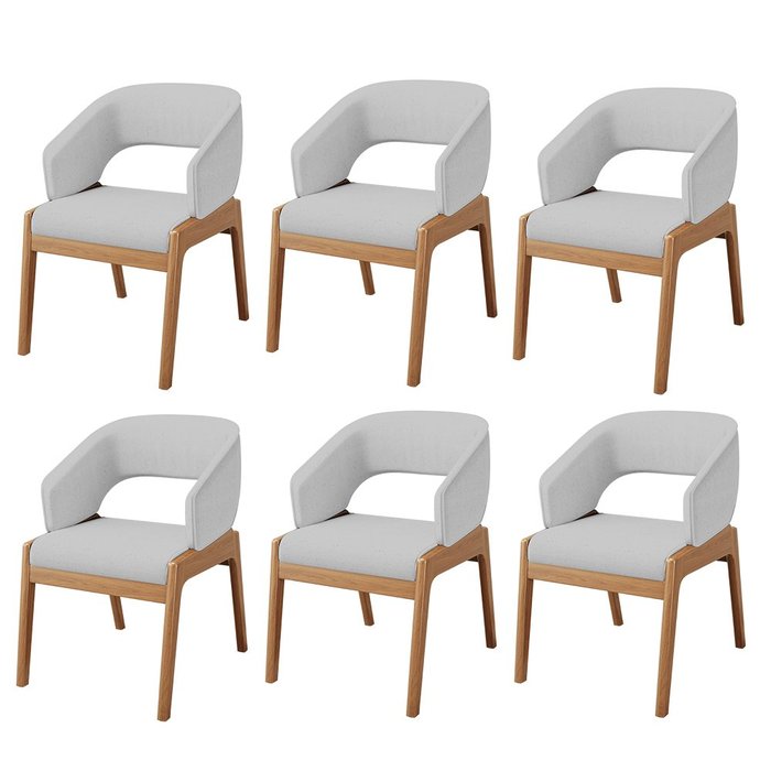 Kit 06 Cadeiras de Jantar e Estar Living Estofada Lince L02 Linho Cinza - Lyam Decor