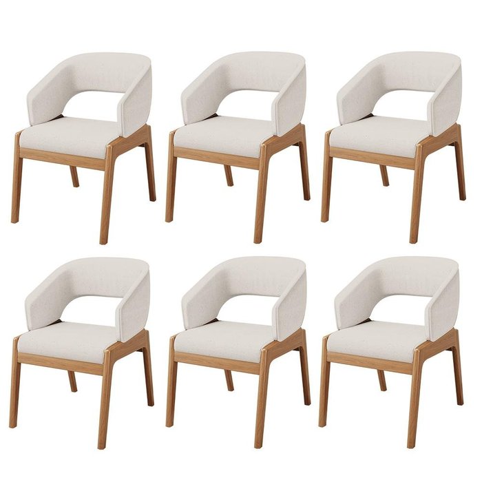 Kit 06 Cadeiras de Jantar e Estar Living Estofada Lince L02 Linho Cru - Lyam Decor