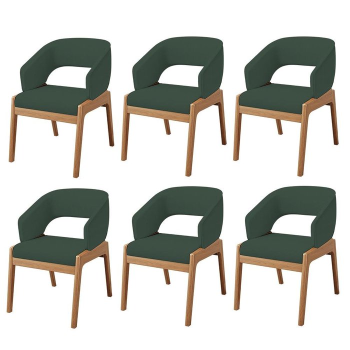Kit 06 Cadeiras de Jantar e Estar Living Estofada Lince L02 Linho Verde Musgo - Lyam Decor