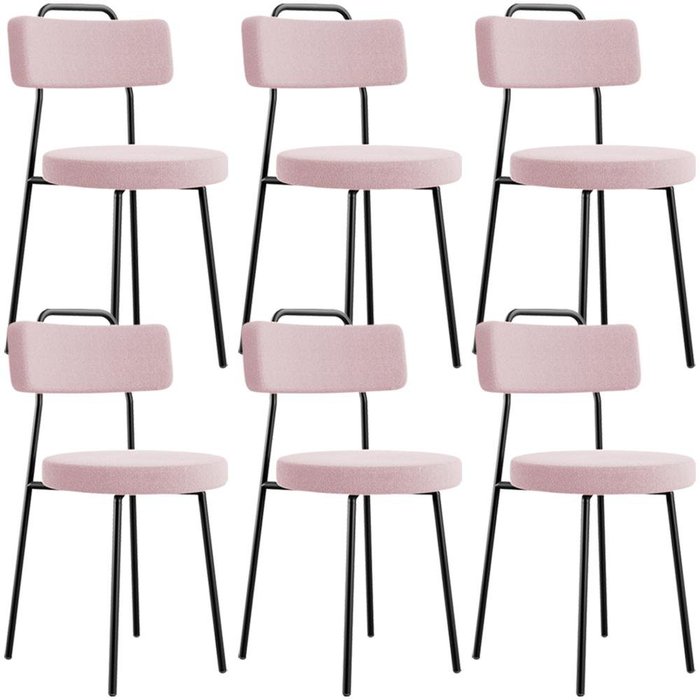 Kit 06 Cadeiras Decorativas Estofada Para Sala De Jantar Barcelona L02 Bouclê Rosê - Lyam Decor