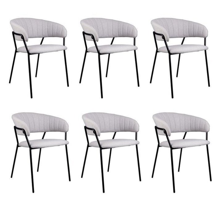Kit 06 Cadeiras para Sala de Jantar com Braços Estofado Base em Aço Mara Linho Cinza