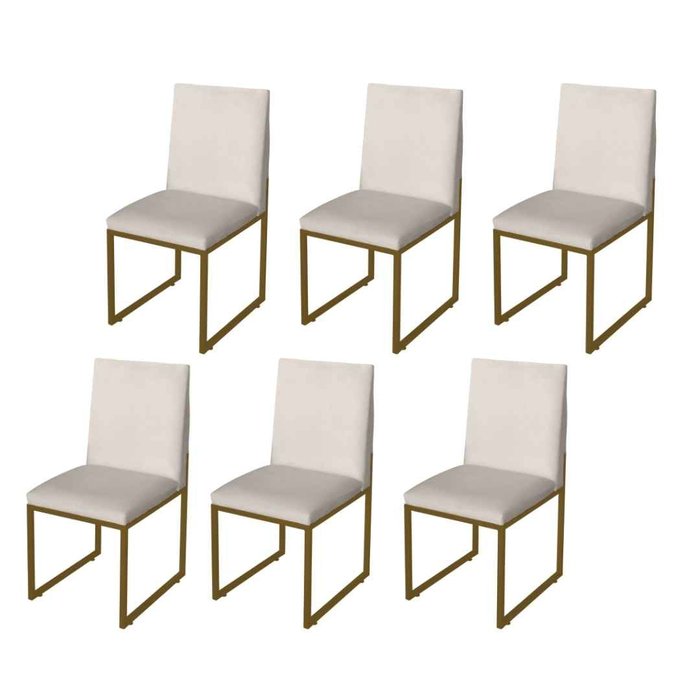 Kit 06 Cadeiras Para Sala De Jantar Escritório Slim Industrial Ferro Dourado Corino Bege- Ruotolo