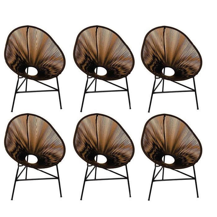 Kit 06 Poltrona Acapulco Plus Para Área Externa Varanda Impermeável Aço e Fibra Sintética Marrom - A