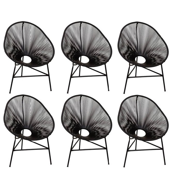 Kit 06 Poltrona Acapulco Plus Para Área Externa Varanda Impermeável Aço e Fibra Sintética Preto
