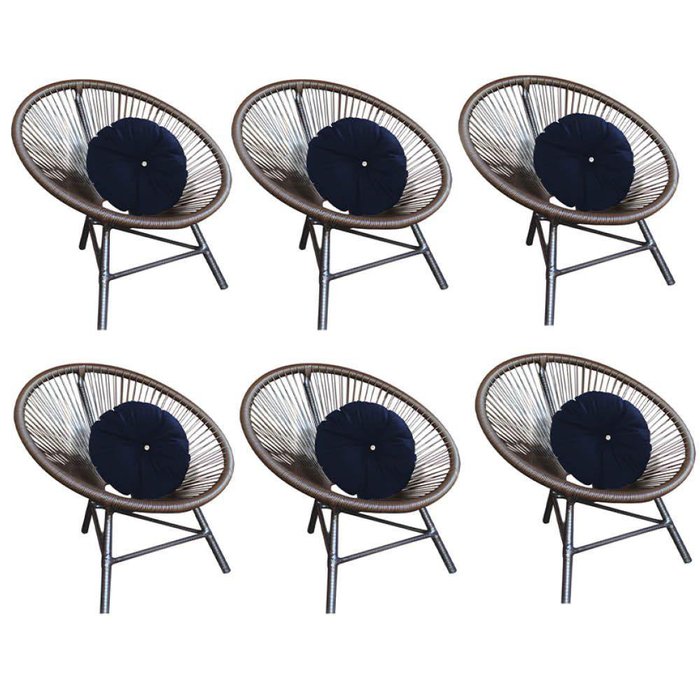 Kit 06 Poltrona Cadeira Acapulco Jardim Varanda Marrom Com Almofada Redonda Strass Suede Azul Marinho - Ahazzo Móveis