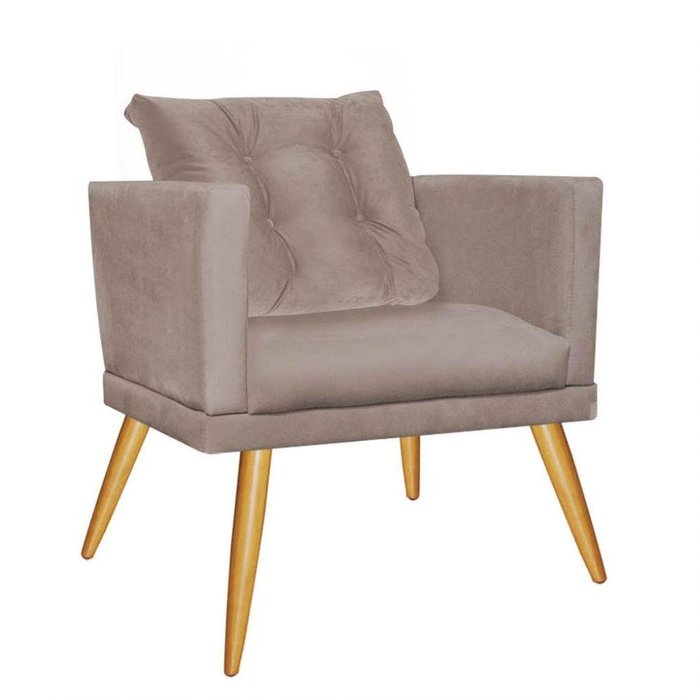 Kit 06 Poltrona Cadeira Kim Luxo Confort Com Almofada Solta Pé Rústico Corino Bege - Ahazzo Móveis