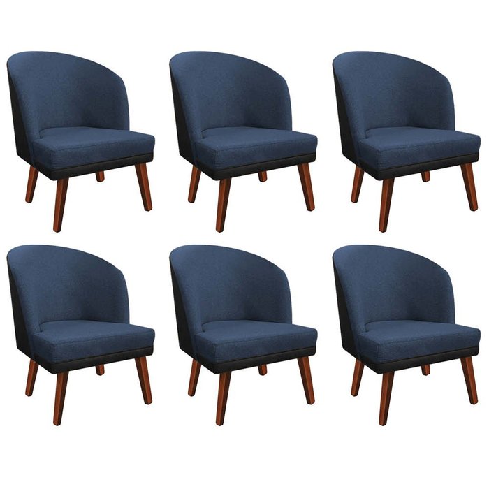Kit 06 Poltrona Cadeira Sophia Pé Trapézio Compose Courissimo Preto Linho Azul Marinho - DOMINIC DEC