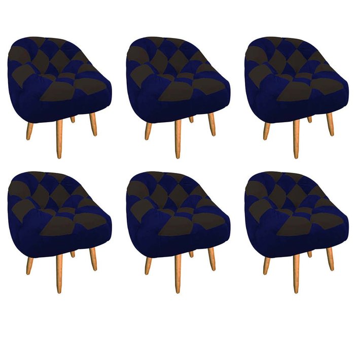 Kit 06 Poltrona Paloma Escritório Sala Pé Palito Suede Azul Marinho e Suede Marrom - DOMINIC DECOR