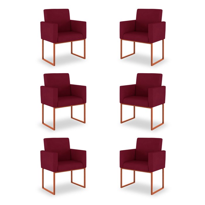 Kit 06 Poltronas Cadeira/sala Marsala- Base Ferro Cobre
