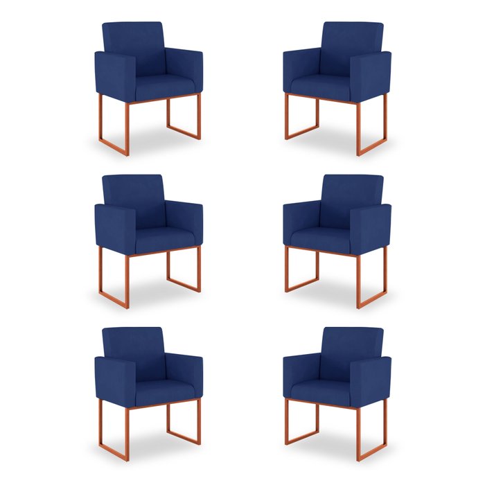 Kit 06 Poltronas Recepção Azul Marinho - Base Ferro Cobre Cobre