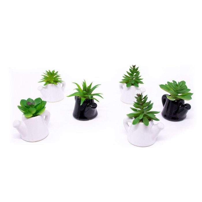 Kit 06 Suculentas Artificiais com Vaso de Cerâmica 9,5x8x6 Cm - D'rossi Branco e Preto