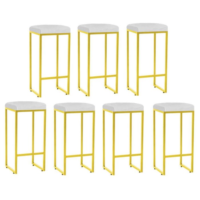 Kit 07 Banqueta Alta Lara Ferro Dourado Branco Branco