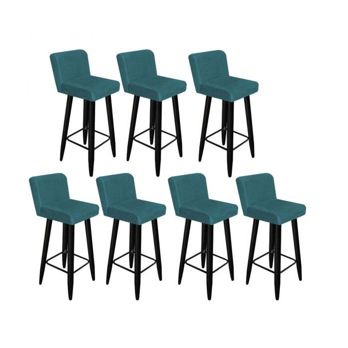 Kit 07 Banquetas Lara Com Encosto Para Balcão e Cozinha Bistrô Suede Azul Turquesa Com Pés