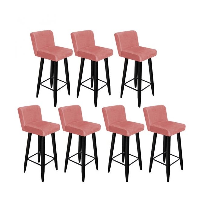 Kit 07 Banquetas Lara Com Encosto Para Balcão e Cozinha Bistrô Suede Marrom Com Pés Palito