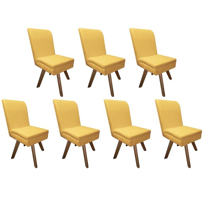 Kit 07 Cadeira Ana de Jantar Giratória Madeira Suede Mostarda e Sintético Preto - Dominic Decor