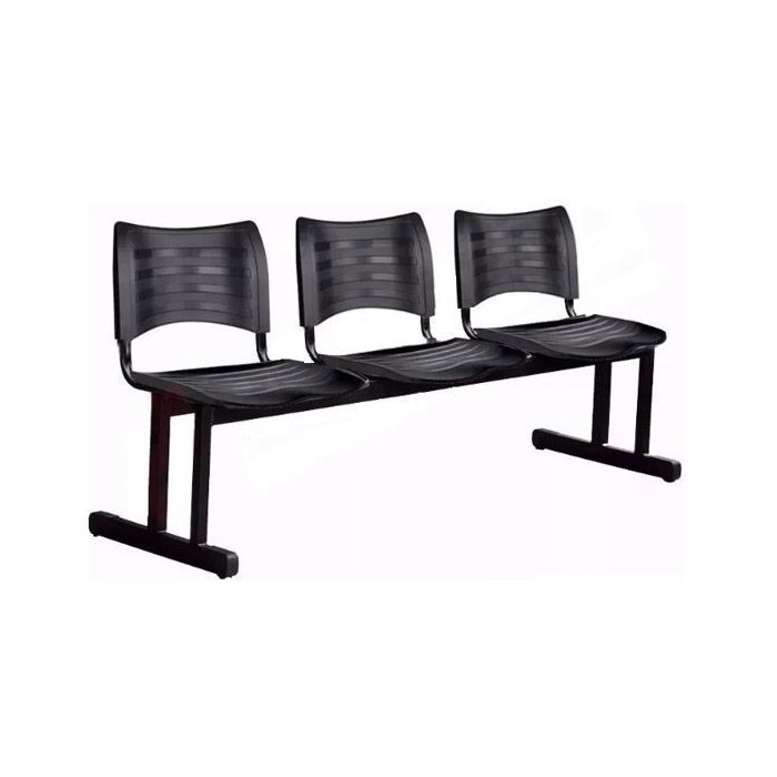 Kit 07 Cadeiras Longarinas Plásticas 03 Lugares – Cor Preta – 23023 Preta