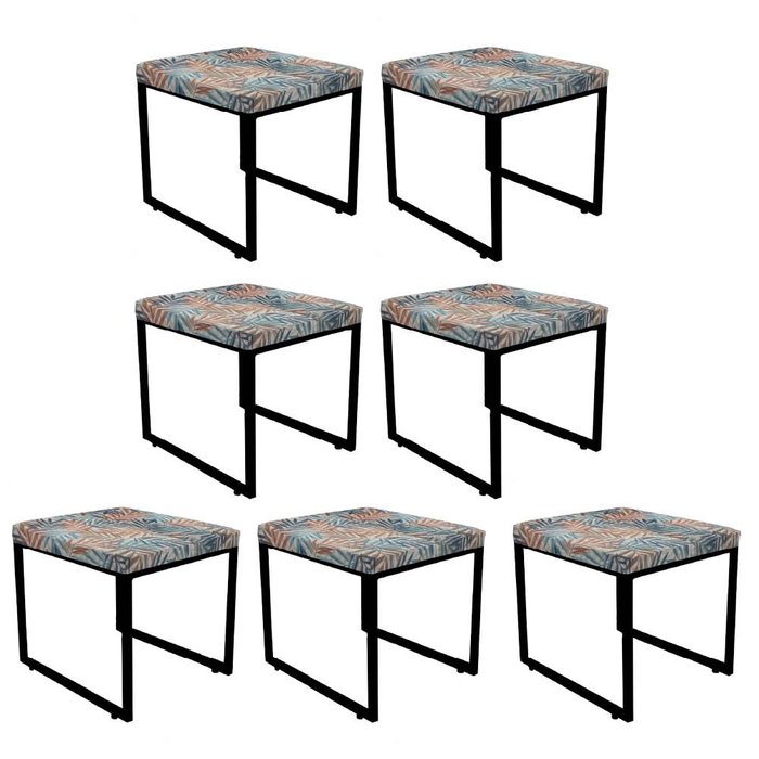 Kit 07 Puff Banqueta Stan Para Penteadeira Sala De Jantar Industrial Ferro Preto Floral AH15 -