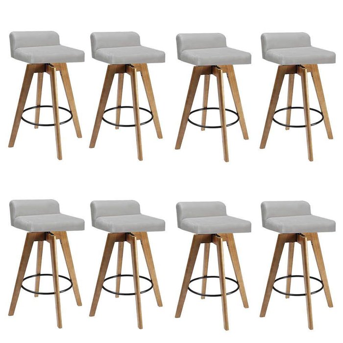 Kit 08 Banqueta Alta Com Encosto Giratória Madeira Bege Bege