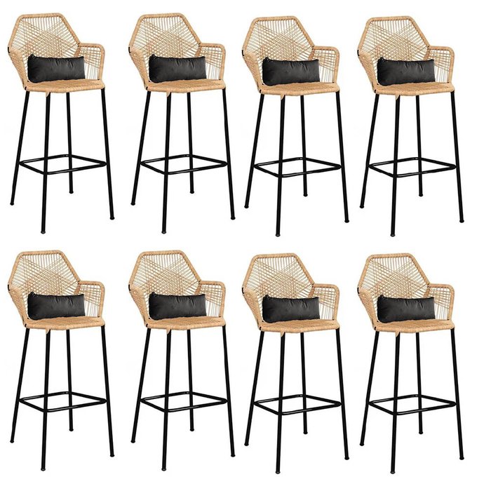 Kit 08 Banqueta Alta Com Encosto Sttar Cozinha Balcão Fibra Palha e Almofada Suede Cinza - Ahazzo