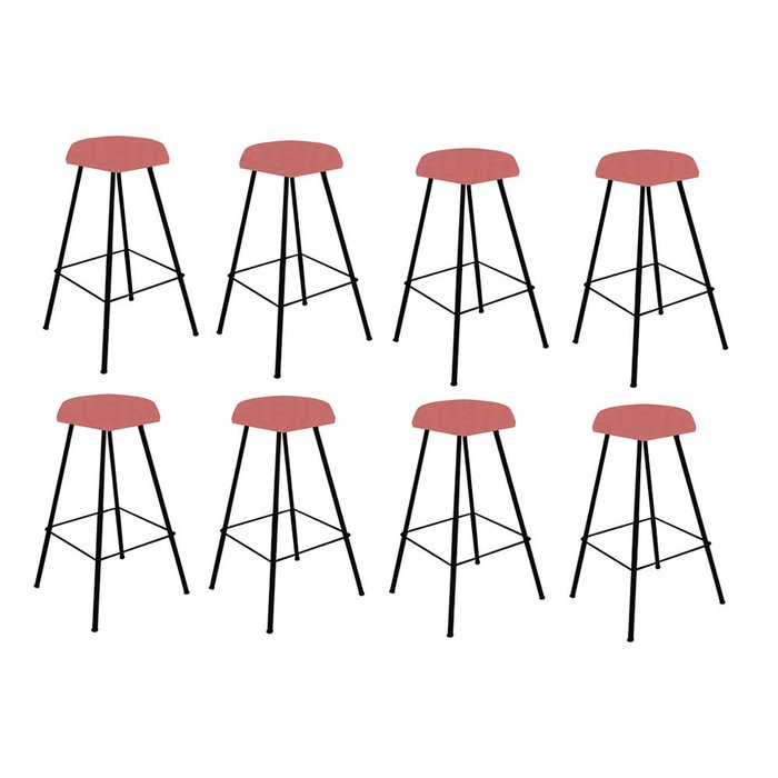 Kit 08 Banqueta Alta Lari Eiffel Hexágono Bancada Bar Balcão Bistrô Ferro Preto Suede Rose Gold