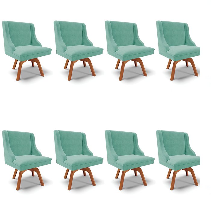 Kit 08 Cadeiras de Jantar Liz Suede Azul Turquesa Base Giratória de Madeira MM35 - D'Rossi