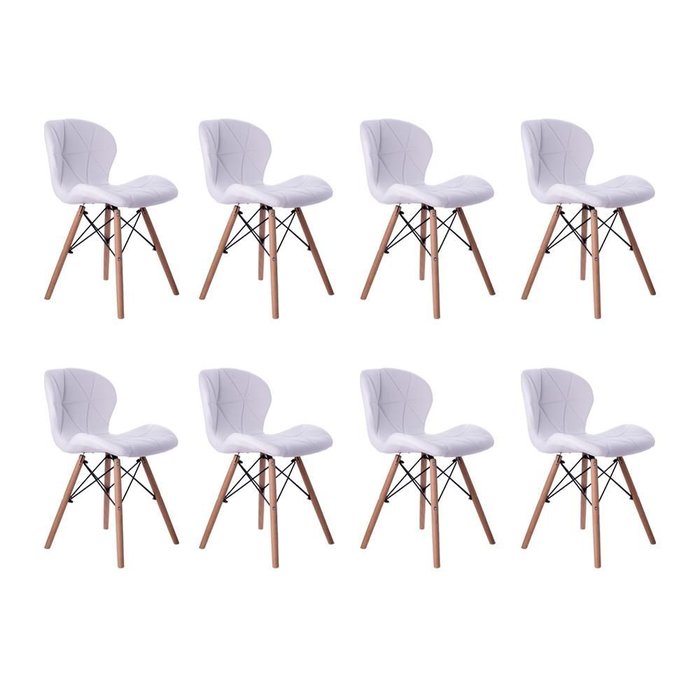 Kit 08 Cadeiras Estofada Jantar Charles Eames Eiffel Slim Wood Confort Branco