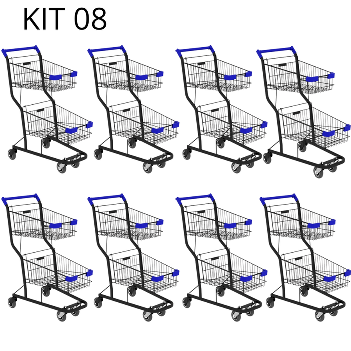 Kit 08 Carrinhos de Compras Supermercado Lojas Reforçado 90l