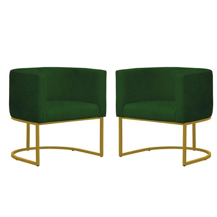 Kit 08 Poltrona Cadeira Ferro Dourado Veludo Verde Musgo