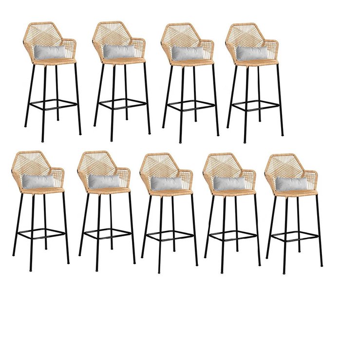 Kit 09 Banqueta Alta Com Encosto Sttar Cozinha Balcão Fibra Caramelo e Almofada Suede Branco -