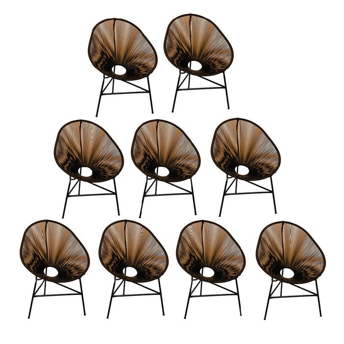 Kit 09 Poltrona Acapulco Plus Para Área Externa Varanda Impermeável Aço e Fibra Sintética Marrom - A