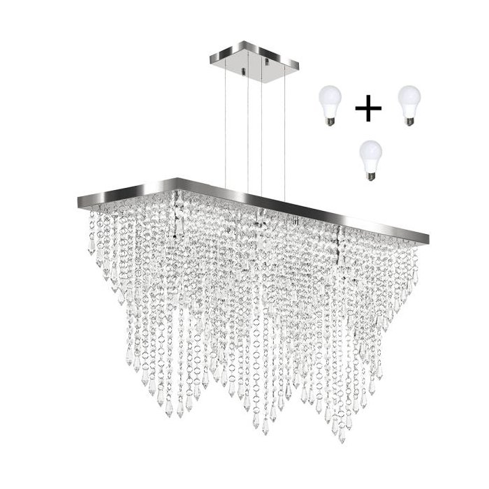 Com vocês, Lustre modelo IMPÉRIO ROMANO Adiciona luxo e sofisticação à sua decoração. A aplicação deste produto é encantadora em ambientes como sala de jantar, sala de estar e afins. Para momentos únicos e aconchegantes essa peça é surpreendentemente indiscutível. Nosso lustre é feito em aço inox polido com cristais de acrílico de alto brilho, criando um belo efeito luminoso. É uma peça que será a cereja do bolo do seu ambiente. É indicada somente para uso interno. DETALHE: A PEÇA VAI MONTADA, É PRECISO SOMENTE INSTALAR.ESPECIFICAÇÕESMATERIAIS: - Aço Inox Espelhado - Cristais de Acrilico de alto brilhoINDICAÇÃO: Iluminação e decoraçãoConteúdo da embalagem:- 01 Lustre 7204 Cromado- 03 Lâmpada LEDDADOS TÉCNICOS: - Alimentação: Bivolt - Tipo de lâmpada: 3 x E-27. - Peso aprox. com embalagem: 1,500kg - Dimensões aprox. do produto (Comprimento x Altura x Largura): 75Cm x 1,50Mts x 25Cm - 304 pirulitos de 30mm de cristal acrílico - 1.552 Castanhas de 14mm de cristal acrílico - Argolas Cromadas