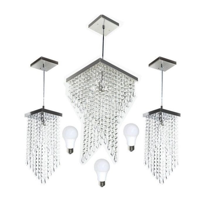 Kit 1 Lustre 7202 + 2 Lustre 7201 Cromado Brilh. com Lâmpada