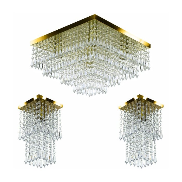Kit 1 Lustre Cristal Acr. Dream + 2 Lustres Spark Dourado