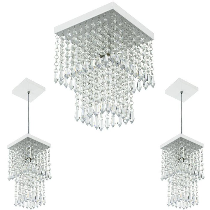 Kit 1 Lustre Cristal Acr. Marry + 2 Pendentes Spark Branco