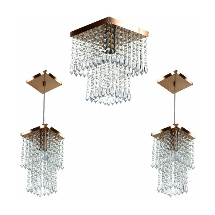Kit 1 Lustre Cristal Acr. Marry + 2 Pendentes Spark Cobre