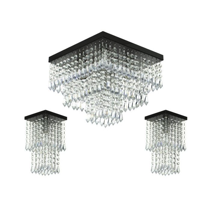 Kit 1 Lustre Cristal Acr. Sweet + 2 Lustres Spark Preto Preto