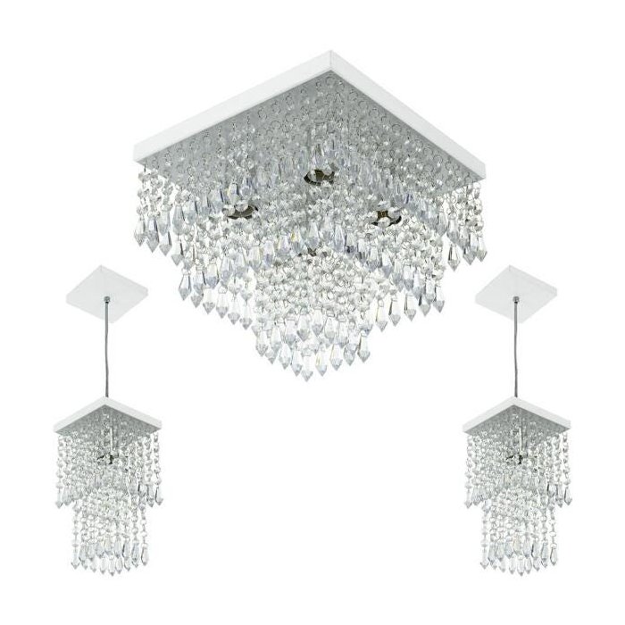 Kit 1 Lustre Cristal Acrilico Sweet 2 Pendentes Spark Branco Branco