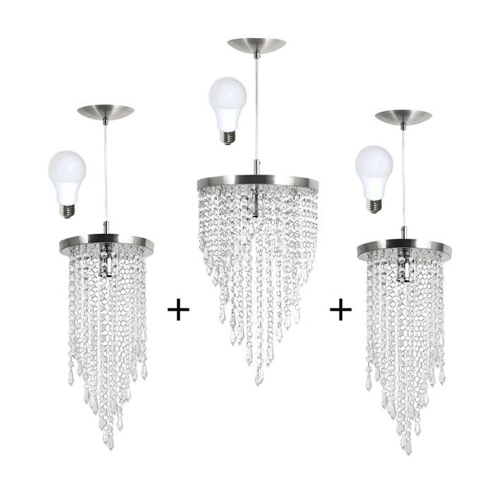 Kit 1 Lustre Redondo Crilik Ls7302 + 2 Ls7301 Cr com Lâmpada