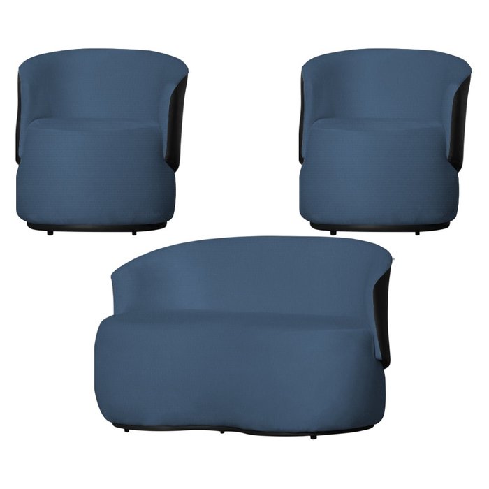Kit 1 Namoradeira e 2 Poltronas Orgânica Beatriz Suede Composê Corino Preto - Estopar Suede Azul Roy