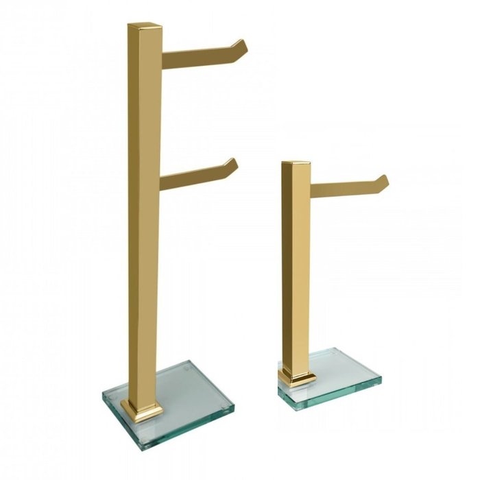 Kit 1 Papeleira de Chão Dupla e 1 Porta Toalhas de Bancada com Vidro Incolor Ducon Metais Gold