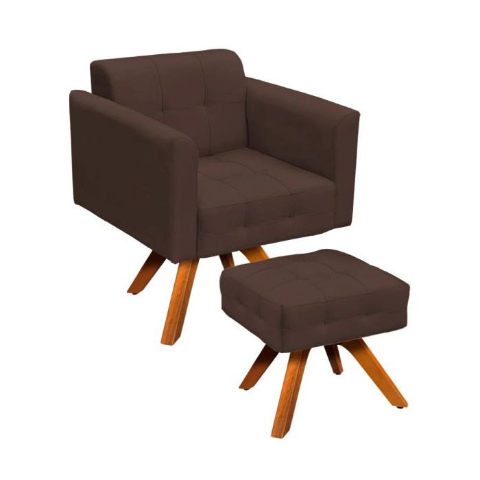 Kit 1 Poltrona com Puff Giratória Elisa Suede - D'Rossi - Marrom Marrom