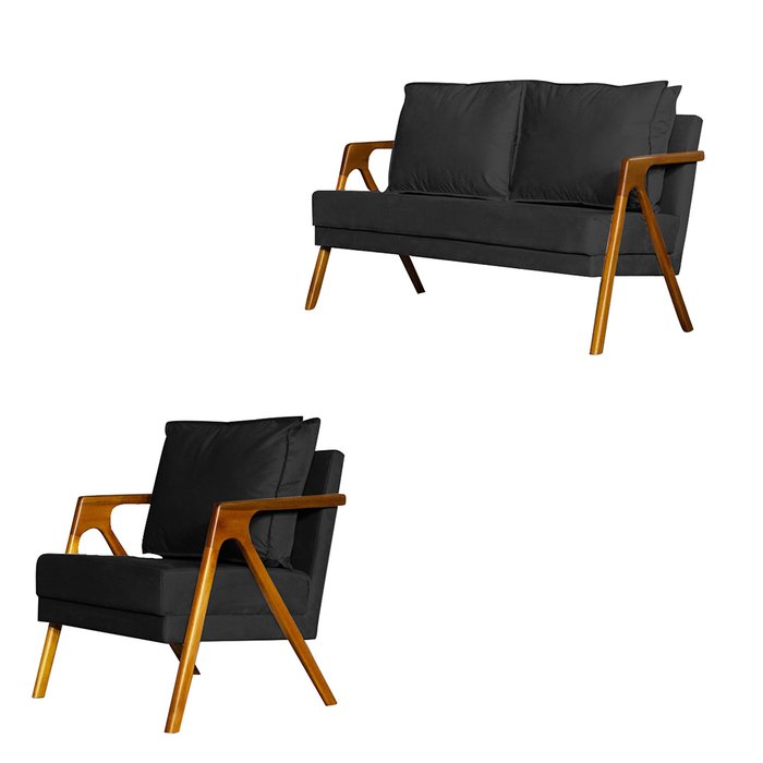 Kit 1 poltrona Marilia + Namoradeira Marilia Recepção - Suede Preto Preto