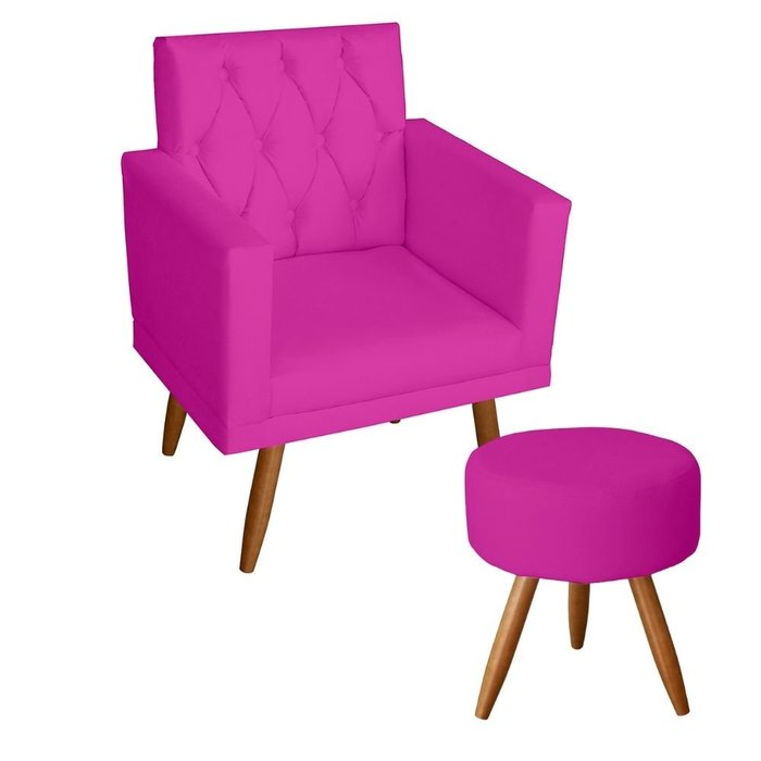 Kit 1 poltrona Para sala de Estar Bianca Capitonê Rodapé e 1 Puff Redondo Corino Pink - Móveis Pink