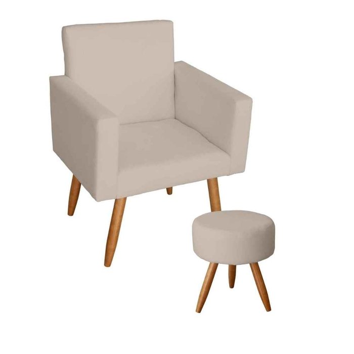 Kit 1 Poltrona Para sala de Estar Lina e 1 Puff Redondo Suede Bege- Móveis Mafer